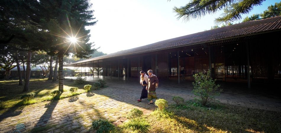 - Buổi chiều: Đoàn tham quan và chụp ảnh tại nhà thờ Ka Đơn. Đây là nhà thờ từng đạt 2 giải kiến trúc quốc tế ở Lâm Đồng. Nhà thờ Ka Đơn từng giành giải nhì cuộc thi Kiến trúc Thánh quốc tế lần thứ 6 - năm 2016 được công bố tại thành phố Pavia, Italy. Trước đó, bản thiết kế của nhà thờ cũng được vinh danh giải thưởng Kiến trúc Thánh châu Âu vào năm 2011. Kiến trúc nhà thờ Ka Đơn được đánh giá là thành công trong việc thể hiện ý tưởng “đơn sơ, ít màu sắc, ít trang trí, trân trọng vẻ đẹp tự nhiên của vật liệu; nhà thờ thì khiêm tốn, hòa vào thiên nhiên, đậm nét văn hóa Churu và tôn tạo nét riêng của vùng đất này”.