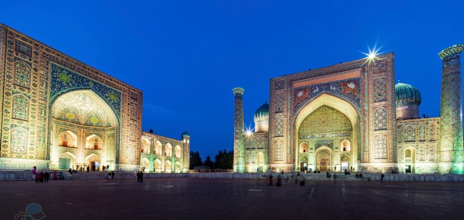 - Đoàn sáng tác ảnh hoàng hôn ba học viện hồi giáo Ulugbek, Sher-Dor và Tilya Kori.