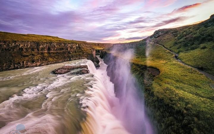 - Đoàn sáng tác ảnh hoàng hôn thác Gullfoss. Thác Gullfoss nằm ở miền Tây Nam Iceland là một trong những thác nước lớn và nổi tiếng của quốc gia này. Gullfoss còn được gọi là thác Vàng, với chiều cao 32m cùng hai tầng thác, dòng nước mạnh mẽ đổ xuống tạo ra cảnh tượng hùng tráng với khung cảnh thiên nhiên xung quanh.