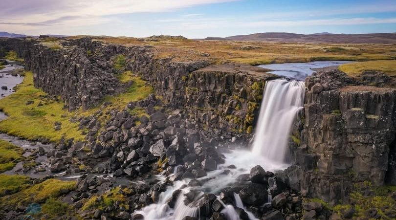 - Đoàn sáng tác ảnh thác Bjarnarfoss. Thác Bjarnarfoss nằm giữa những ngọn đồi Iceland của Bán đảo Snaefellsness. Thác nước hai tầng đổ xuống những cột đá bazan hùng vĩ.