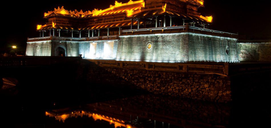 - Đoàn chụp hoàng hôn tại Ngọ Môn kinh thành Huế. Đây vừa là cổng chính vừa là bộ mặt của Ðại Nội. Mặc dù đã trải qua hơn một thế kỷ rưỡi với bao cơn bão táp của thiên nhiên và chiến tranh tàn phá, nhưng nhờ có kỹ thuật xây dựng khéo léo và nhất là nghệ thuật kiến trúc rất thành thạo.