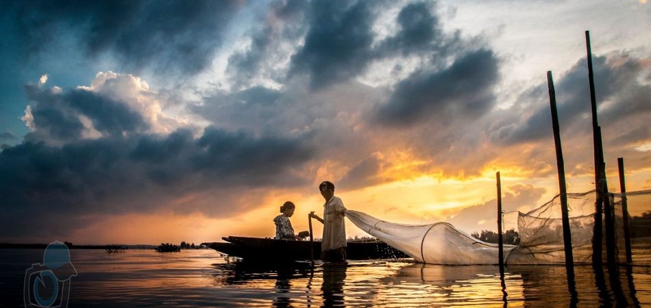 - Cảnh quăng chài cánh bướm trên dòng sông ngược nắng thu hút nhiều nhiếp ảnh gia đến nơi này trên dòng sông Như Ý.