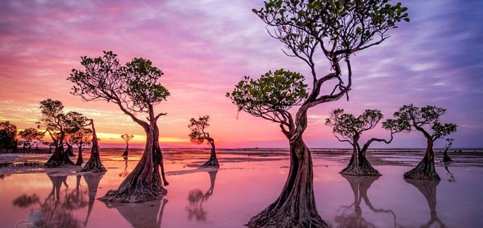- Đoàn sáng tác ảnh hoàng hôn rừng cây huyền thoại Dancing tree. Sở dĩ có tên gọi như vậy không phải vì những chiếc cây này chuyển động mà bởi chúng có hình dáng uốn lượn nhẹ nhàng giống như các vũ công đang múa. Khi ánh chiều tà buông xuống mỗi ngày, cũng là lúc nước biển rút xuống, để lộ rễ của những cây đước lùn với hình dáng kỳ quái, không theo bất kỳ một quy tắc nào.