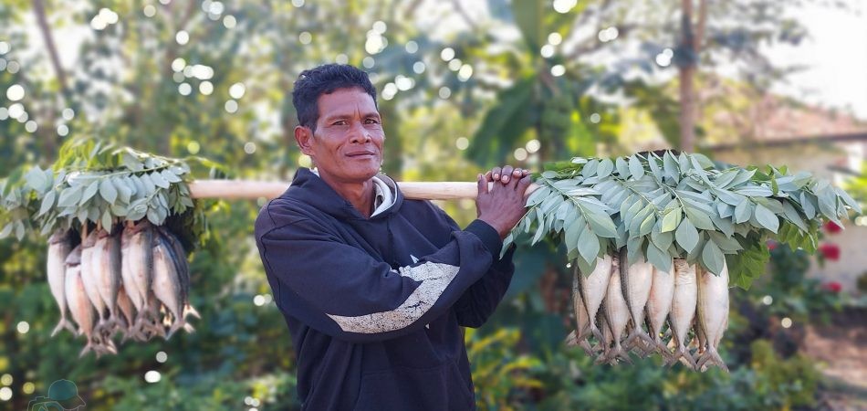 - Đoàn tham quan và chụp ảnh nghề nấu muối truyền thống bằng củi của người dân trên đảo Sumba.