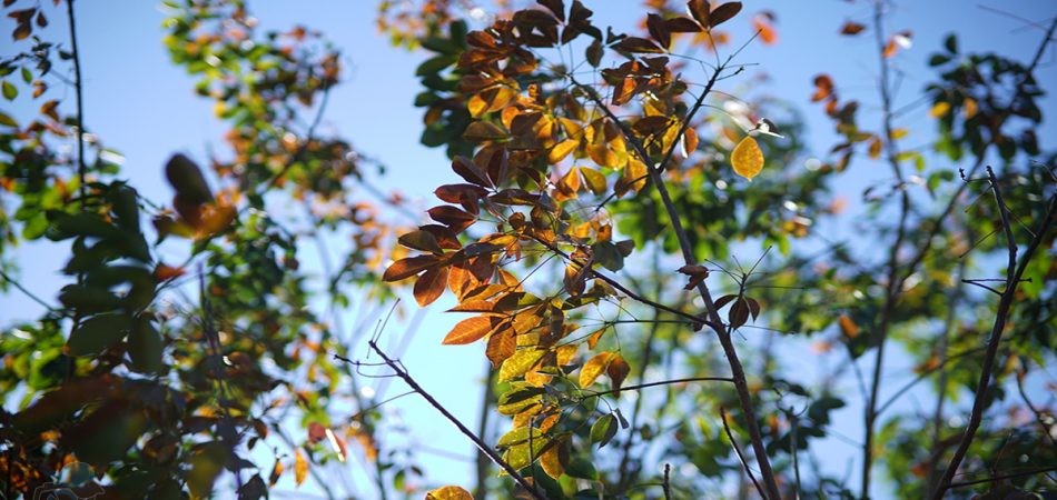 6. Hàng cây khô trụi lá mùa thu.
