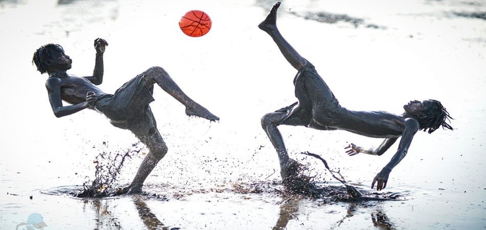 – Đoàn sáng tác ảnh đời thường trẻ em đá bóng dưới bùn. Trang phục chung của người đá chính là… bùn đất từ chân đến mặt. Những pha bóng đầy nghệ thuật với những cảnh chụp tuyệt đẹp.