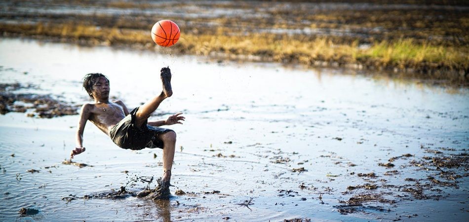 6. Đời thường trẻ em đá bóng dưới bùn.