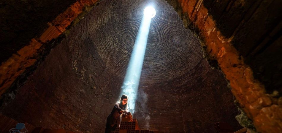 – Đoàn sáng tác ảnh đời thường xếp gạch trong lò gạch.