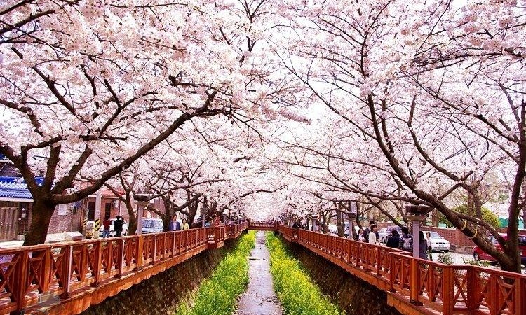 Có hàng trăm loại cây anh đào trên khắp thế giới nhưng hoa anh đào ở Hàn Quốc là loại anh đào vua quý hiếm có nguồn gốc từ đảo Jeju. Không phải lúc nào hoa cũng màu hồng, một số chúng đổi màu trong suốt thời kỳ nở hoa – chuyển từ màu vàng lục sang trắng sang hồng.