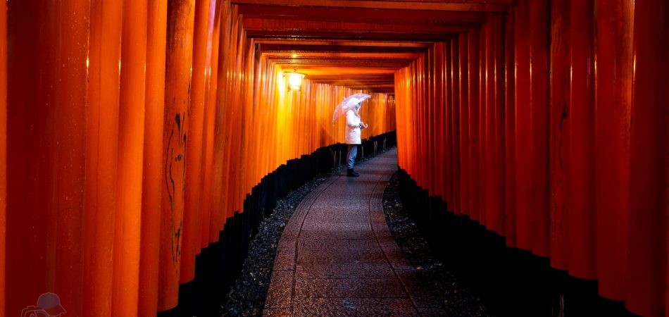 - Đoàn tham quan và sáng tác ảnh những cây cổng đỏ rực rỡ trải dọc con đường dài 4 km dẫn lên đền Fushimi Inari Taisha thờ thần Inari. Inari được coi là vị thần bảo trợ kinh doanh.