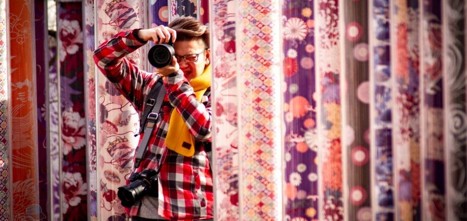 - Đoàn tham quan và chụp ảnh tại khu rừng Kimono này có 600 cột Kyo Yuzen cao hơn 2 mét được gói bằng vải kimono. Kyo Yuzen thuộc về một cửa hiệu "Kameda Tomimaki Factory" đã được thành lập từ lâu, kể từ thời Taisho, và có tất cả 32 loại hoa văn. Mỗi loại vải đều được thiết kế bởi Kamedatomi, một nhà máy dệt có tiếng từ thời Taisho. Các thiết kế đẹp đã được thực hiện bằng cách sử dụng phương pháp nhuộm truyền thống của Kyoto Yuzen.