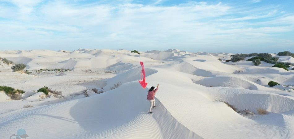 - Đoàn sáng tác ảnh đồi cát trắng Pinnacles. Vườn quốc gia Nambung còn là điểm đến có nhiều bãi cát trải dài và những làng chài kề sát nhau khiến cho du khách có cảm giác yên bình và thư thái khi ghé thăm. Ánh mặt trời sẽ tạo ra một sự tương phản làm nổi bật màu của đá và màu đen của bóng cột được in trên mặt đất như những gợn sóng cực đẹp.