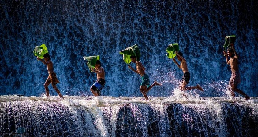 2. Đời thường trẻ em nô đùa bên đập nước.