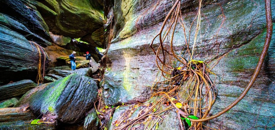 - Đoàn tham quan và sáng tác ảnh hang Thạch Vân với vẻ đẹp nguyên sơ, hùng tráng. Những tảng đá dựng đứng, trải qua thời gian hàng triệu năm bào mòn, tạo nên những đường vân hình thù kỳ lạ được rêu và dây leo giăng khắp nơi mang đến cảm giác ma mị quyến rũ.