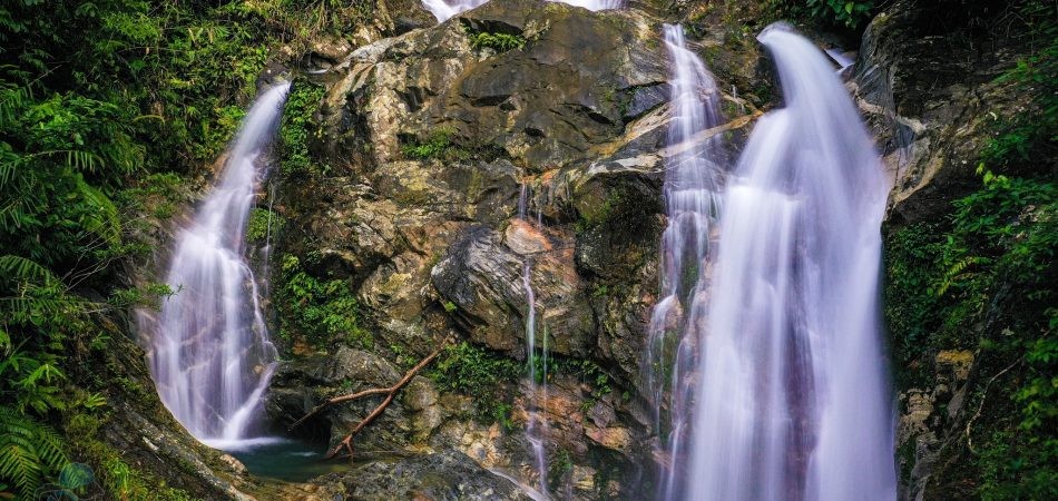 - Đoàn tham quan và chụp ảnh thác 5 tầng với nét đẹp hùng vĩ mê hoặc lòng người. Thác cao gần 100 mét, nước tung trắng xóa in bóng vào những vách đá rêu phong đẹp đến mê hồn. Qua nhiều năm tháng, nơi đây hình thành những hồ nước trong vắt, có hồ diện tích rộng hơn 10 mét vuông, lòng nước sâu hơn 3 mét.
