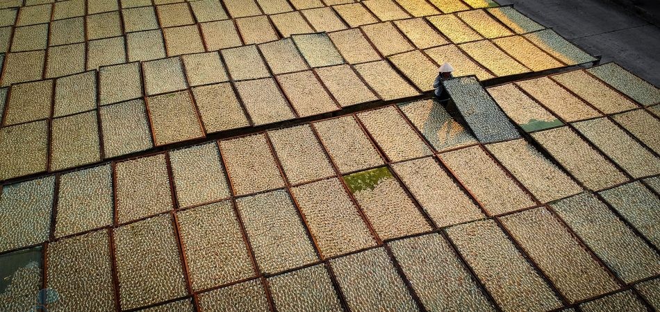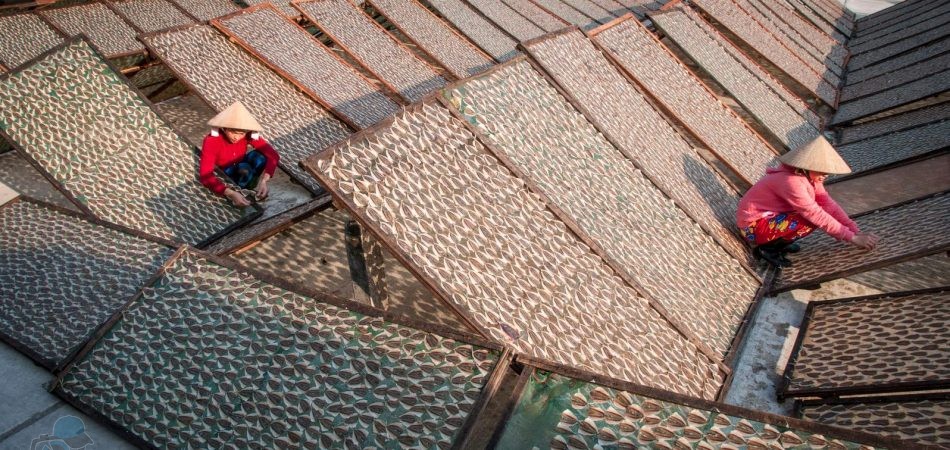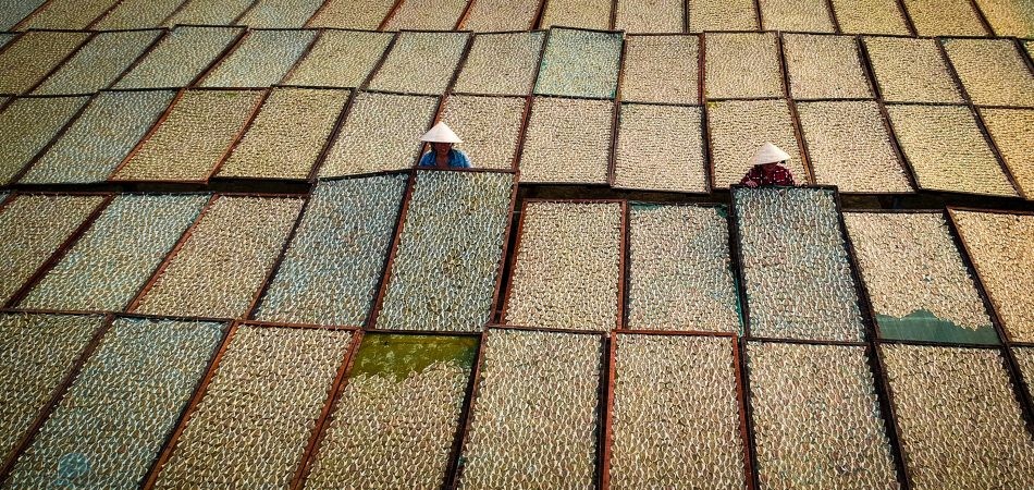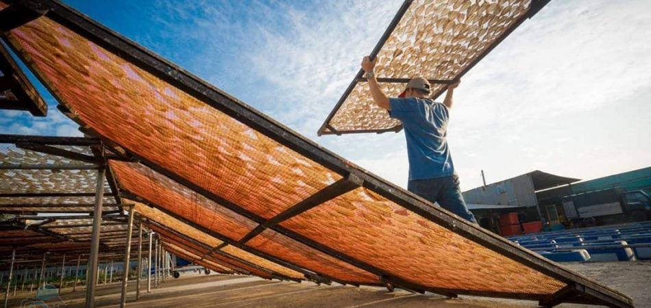 - Buổi chiều: Đoàn tham quan và sáng tác ảnh phơi khô cá chỉ vàng. Vị ngọt béo của thịt cá kết hợp với mùi thơm của nắng, độ vừa vặn của gia vị tẩm ướp tạo nên món khô cá chỉ vàng đặc trưng của người xứ biển. Đây là một trong những loại cá nước mặn sinh sống ở vùng ven bờ và chuyên ăn các loài sinh vật nổi, cá chỉ vàng là nguồn lợi hải sản được ngư dân đánh bắt quanh năm. Cá tươi đạt chuẩn được xẻ đôi dọc sống lưng rồi rửa sạch và để ráo nước. Sau đó, người làm đem tẩm ướp cá với muối, đường, bột ngọt, ớt, tiêu và một số gia vị khác, ủ hơn một ngày để cho gia vị thấm đều vào từng thớ thịt bên trong. Khi cá đã thấm gia vị, người làm mang cá ra phơi nắng. Trong quá trình làm khô cá, ngoài nguồn nguyên liệu tươi ngon, đạt chuẩn kích cỡ và chất lượng thì khâu canh nắng để làm khô cũng quan trọng không kém. Khô cá được phơi vào những ngày nắng nhiều, đảm bảo thịt cá se đều. Nếu phơi cá dưới nắng non, không đủ độ nóng, khô cá sẽ không chắc, thiếu vị ngon. Cá được rải phơi xếp lớp dưới khoảng 2-3 lần nắng cho tới khi màu trắng trên thân cá ngả sang màu đỏ đượm.